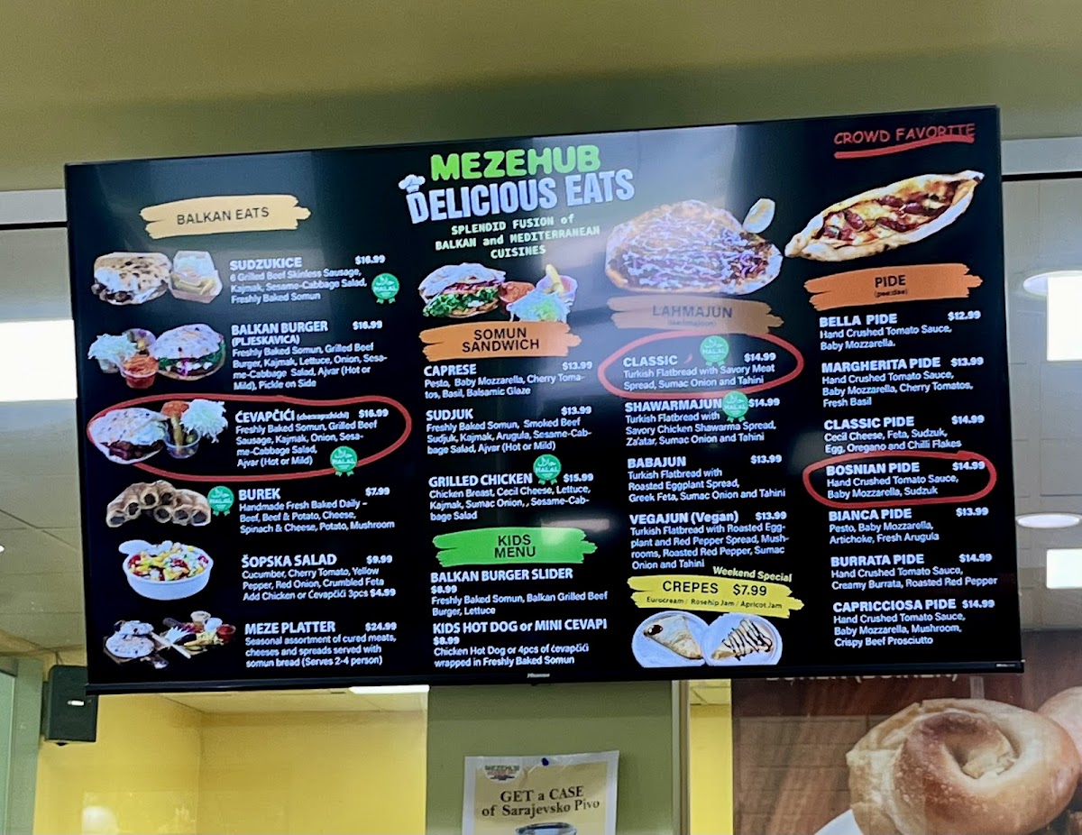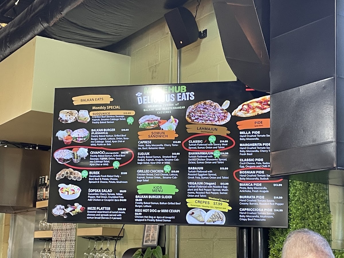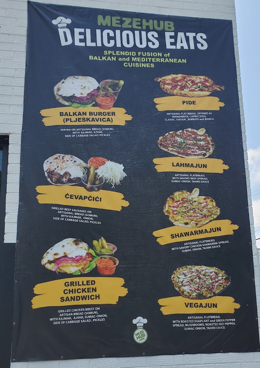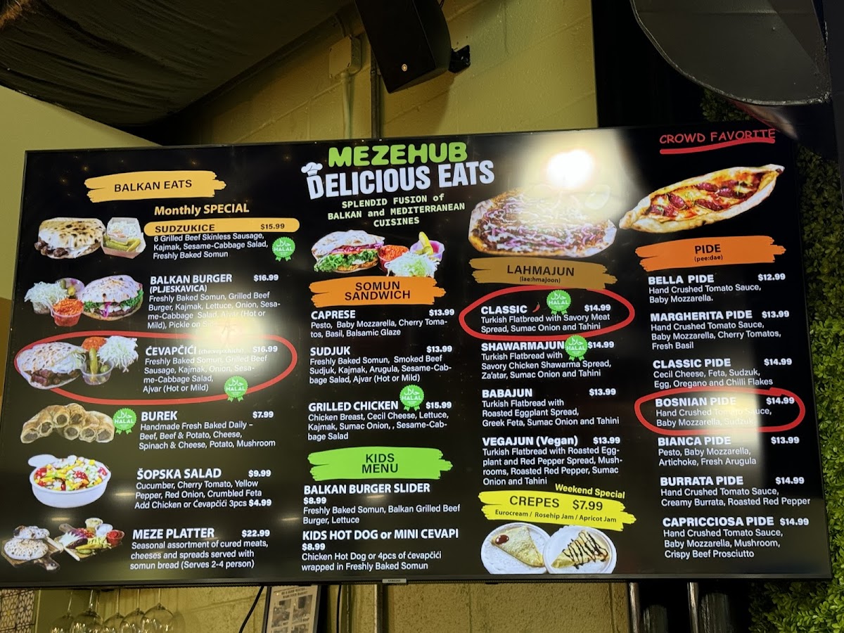 Meze Mixed Meat Platter: The Ultimate Balkan Experience - Assortment of mixed grilled meats - Cevapcici beef kabobs, Pljeskavica burgers, Sudzukice sausages, marinated chicken and spreads served with somun bread (homemade). Serves 2-4 people.